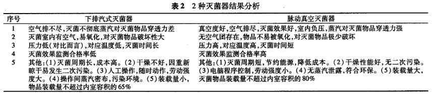 綜上所述,對(duì)兩種滅菌器進(jìn)行對(duì)比得出脈動(dòng)真空滅菌器,真空度好,內(nèi)室無(wú)空氣死角,利于蒸氣穿透物品。