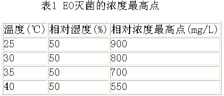 表1 EO滅菌的濃度**高點(diǎn)